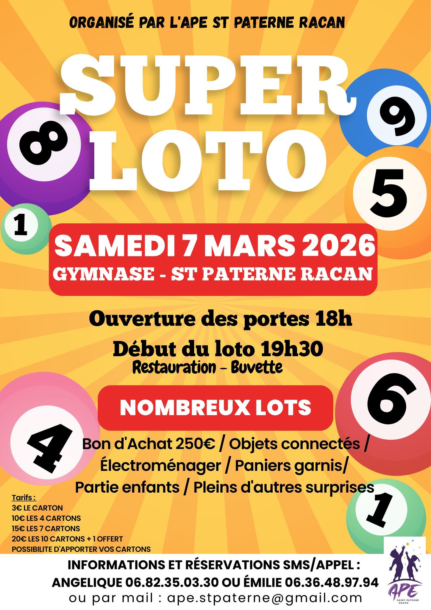 Samedi 7 Mars 2026 – Ouverture des portes à 18h / Début du loto à 19h30